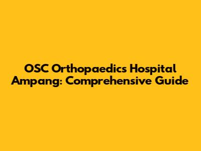 OSC Orthopaedics Hospital Ampang: Comprehensive Guide