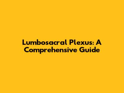 Lumbosacral Plexus: A Comprehensive Guide