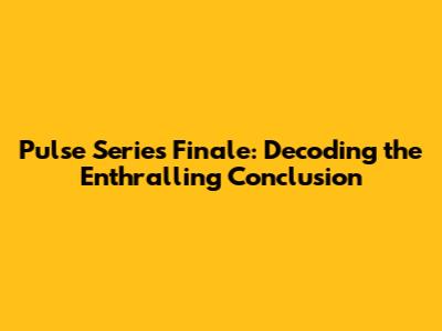 Hey everyone, let's dive deep into the Pulse series finale! You know, that final episode has got us all buzzing, right? We're here to break down exactly what went down, the juicy details, and, of course, answer all your burning questions about how the Pulse series ended. So, buckle up, because we're about to embark on a recap ride, a deep dive into the final moments, and an Pulse series ending explained session that'll leave you satisfied. Get ready for spoilers, theories, and a whole lot of discussion about that memorable last episode.
