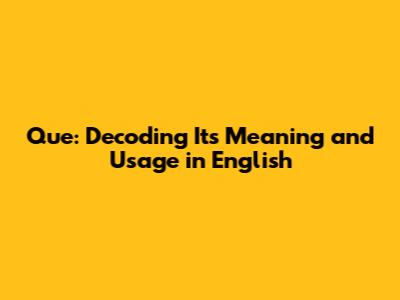 Understanding the Basics of "Que"