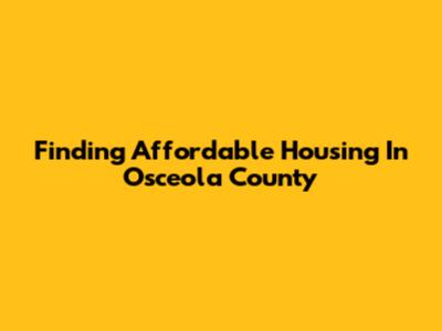 Finding Affordable Housing In Osceola County