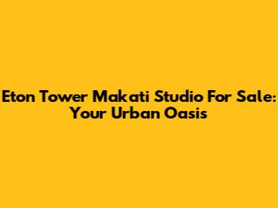 Eton Tower Makati Studio For Sale: Your Urban Oasis
