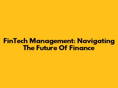 FinTech Management: Navigating The Future Of Finance