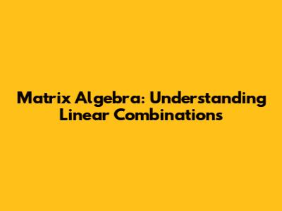 Matrix Algebra: Understanding Linear Combinations