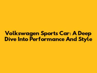 Volkswagen Sports Car: A Deep Dive Into Performance And Style