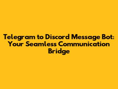 What is a Telegram to Discord Message Bot?