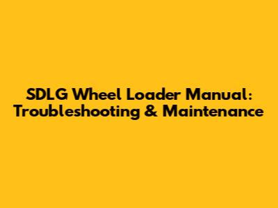 SDLG Wheel Loader Manual: Troubleshooting & Maintenance