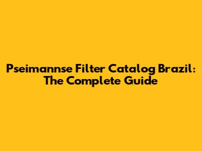 Pseimannse Filter Catalog Brazil: The Complete Guide
