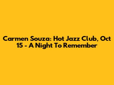 Carmen Souza: Hot Jazz Club, Oct 15 - A Night To Remember