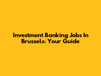 Investment Banking Jobs In Brussels: Your Guide
