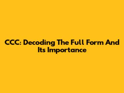 CCC: Decoding The Full Form And Its Importance