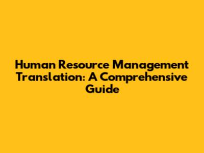 Human Resource Management Translation: A Comprehensive Guide