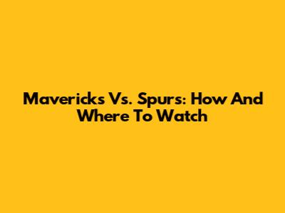 Mavericks Vs. Spurs: How And Where To Watch