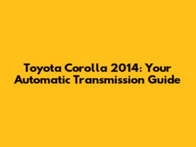 Toyota Corolla 2014: Your Automatic Transmission Guide