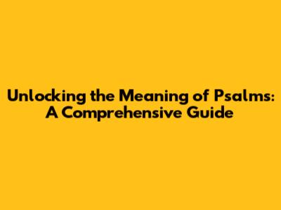 So go ahead, dive in! Unlock the meaning of the Psalms, and discover the treasures that await you.