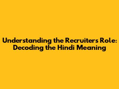 Unveiling the Hindi Translation: What is the meaning of recruiter in Hindi?