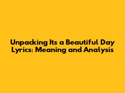 Hey music lovers! Ever found yourself humming along to a tune and wondering, "What's the real story behind these lyrics?" Well, today, we're diving deep into the lyrics of 'It's a Beautiful Day'. This song, with its catchy melody and seemingly simple message, has a lot more to offer than meets the ear. We're going to unpack the meaning, explore the hidden nuances, and maybe even discover a new appreciation for this classic. So, grab your headphones, get comfy, and let's get started on this lyrical journey!
