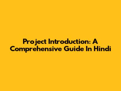 Project Introduction: A Comprehensive Guide In Hindi