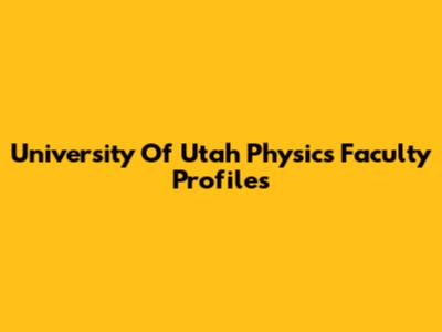 University Of Utah Physics Faculty Profiles