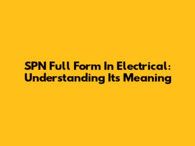 SPN Full Form In Electrical: Understanding Its Meaning